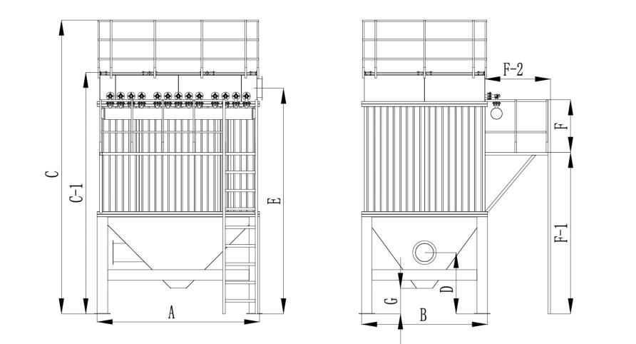 দ্রষ্টব্য: সাইটের সীমাবদ্ধতা বা পরিবহন সীমাবদ্ধতার কারণে, পালস জেট ব্যাগহাউস ধুলো সংগ্রাহকগুলিতে ছাই হপারের সংখ্যা এক থেকে একাধিক ইউনিটের মধ্যে পরিবর্তিত হতে পারে।